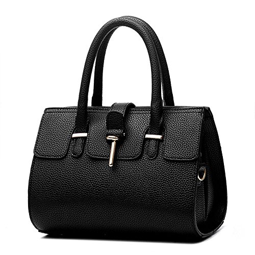 Ryse Womens Fashionable Metal Buckle Classic Exquisite Handbag Shoulder Bag(Black)