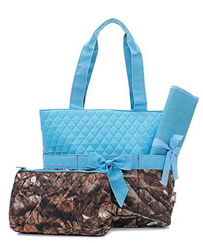 Why Use Quilted Turquoise And Natural Camo Print Monogrammable 3 Piece Diaper Bag With Changing Pad Tote Bag ?