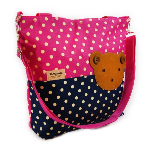 If you're looking for something less floral or feminine, there's an entire subindustry aimed at designing diaper bags for dads. Ju-Ju-Be carries the Be Hip messenger bag in slate and timber colors, for example. Storksak carries the Jamie bag made of cowhide and big enough to fit a laptop along with the nappies. And DadGear messenger bags can be found decorated with flames and skulls, if you're so inclined. Just keep in mind that a bigger investment might not deliver a bigger return in terms of convenience or durability. And remember that a diaper bag can get dirty and worn pretty quickly.My Little Polka-dot Shoulder Bag/Handbag for Kids & Parents, Bear, Pink/Blue will help your job easier dexMy Little Polka-dot Should Bag / Handbag is sized for kids (please check the dimension information from the picture gallery). Things like story books, color pencils etc should go in easily for its wide width and high height design. There are a few compartments inside the bag for better organization of the stored materials. Please check out the picture gallery which shows the interior. Then, you will have a better idea! The bag can be used in two ways - as either a handbag or a shoulder bag by detaching or attaching the provided strap. Your kids will be well packed and be ready for school, day care, field trip.