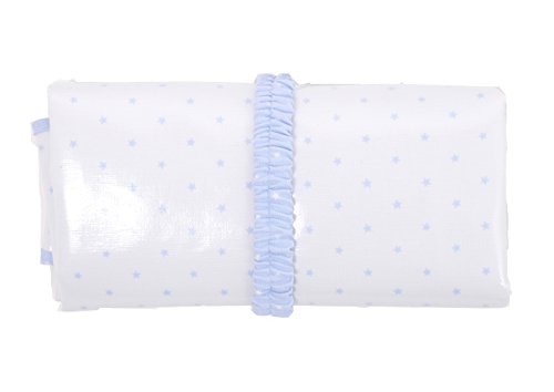 If you're looking for something less floral or feminine, there's an entire subindustry aimed at designing diaper bags for dads. Ju-Ju-Be carries the Be Hip messenger bag in slate and timber colors, for example. Storksak carries the Jamie bag made of cowhide and big enough to fit a laptop along with the nappies. And DadGear messenger bags can be found decorated with flames and skulls, if you're so inclined. Just keep in mind that a bigger investment might not deliver a bigger return in terms of convenience or durability. And remember that a diaper bag can get dirty and worn pretty quickly.Patucos Blue Star Infant Changing Mat will help your job easier dexSpacious and practical changing station. Includes comfortable folding for use away from home. •Composition: 70% Cotton, 30% Polyester. Plasticized : 100%P.V.C. •Classic style •Collection: Blue Star Blue Star collection: Beautiful and complete family of articles. Simplicity and refinement in baby blue little stars printed on white color material. Some articles have a laminated (bags, changing mat, etc.) plastic layer, useful for traveling or going outside.